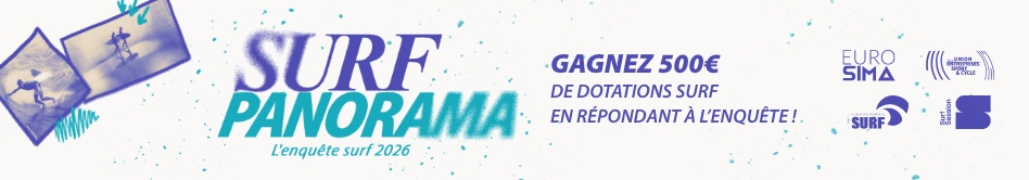 SURF PANORAMA : la grosse enquête Surf en France La parole aux surfeurs Bonjour,Tu t'apprêtes à démarrer un vaste questionnaire en ligne destiné à mieux connaître les surfeurs français, leur pratique, leurs habitudes de consommation, de voyages, de culture etc. Il s'agit de la plus grosse enquête de ce genre réalisée depuis 2017. Elle est réalisée en partenariat avec la Fédération Française de Surf, Surf Session et l'UNION des Entreprises Sport & Cycle Nouvelle-Aquitaine (UESC-NA) Bon, y répondre va te demander un peu de temps (10 minutes environ). Pour t'encourager à aller au bout :- on t'offre la chance de gagner par tirage au sort 2 x 500€ de bons d'achats chez certaines des marques adhérentes à EuroSIMA*.- on te propose une playlist Spotify de surf music afin de t'accompagner dans ce questionnaire.Merci d'avance pour ton temps, les résultats seront à retrouver courant mai sur www.surfsession.com et eurosima.com. Tu sera prévenu par mail de leur publication.*lots mis à disposition par Billabong, FCS/Gorilla Grip, Madness, Moskova, Oxbow, Quiksilver, Pride, Rip Curl, ROXY et Volcom.Enquête réservée aux plus de 16 ans conformément à la législation. Suiv.